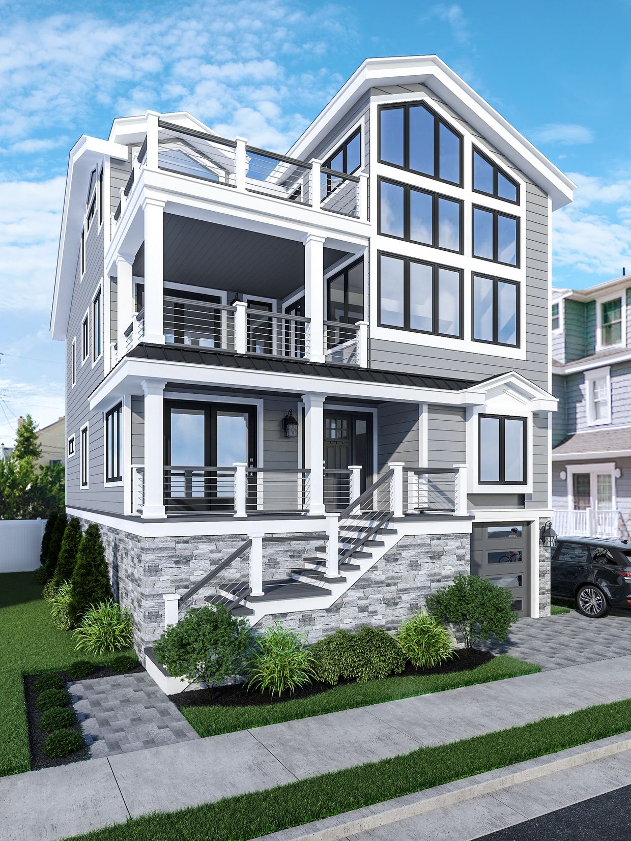 This Longport home was gutted, raised to above the flood plain, and then had one and a half stories added to it. See the final renovation in the next photo.